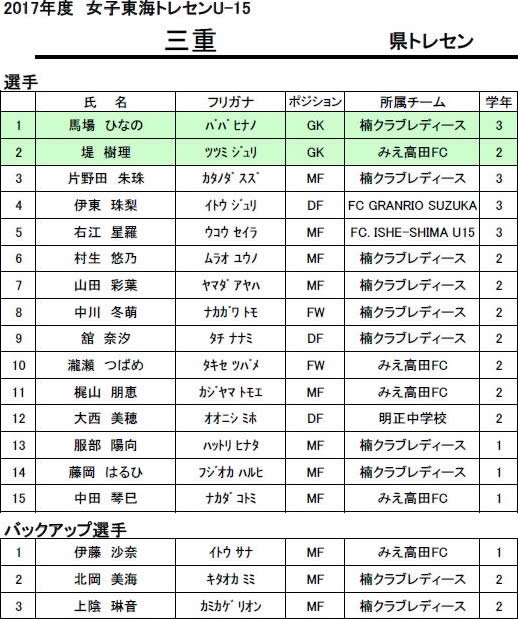 U-15女子