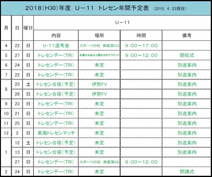 【2018年度】三重県サッカー協会 トレセンU-11 スケジュール&選考会 合格者名簿