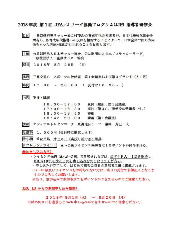 Eラーニング、その他自費研修については、JFAホームページ参照ください。