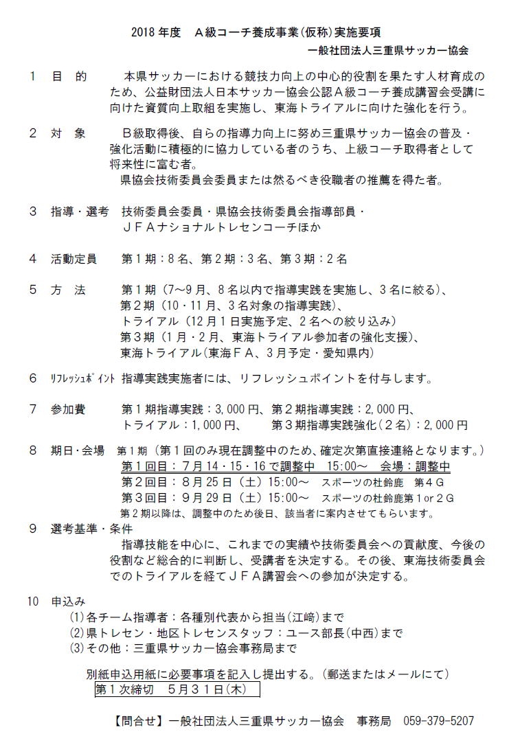 締切迫る!【2018年度】A級コーチトライアルに向けてのA級コーチ養成事業