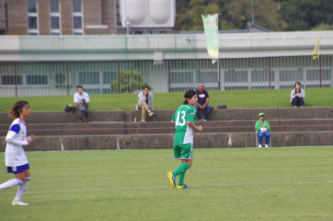 立ち上がりからボールを支配しながらゲームを進めるも岡山守備陣の好守に阻まれ得点出来ず前半はスコアレスドローに終わるかという雰囲気を払拭するかのように前半終了間際の33分にエース杉田選手の巧みなループ気味のシュートがネットに突き刺さる。