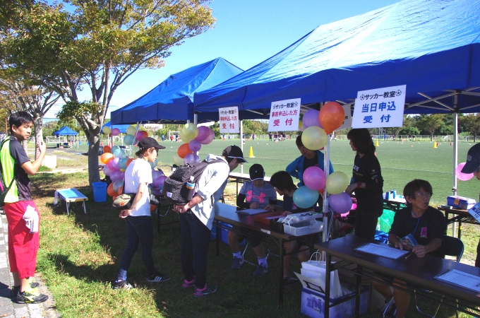 フリースペースではキックターゲット、大玉シュートコーナー、写真コーナーを設けました