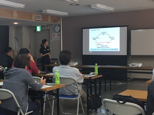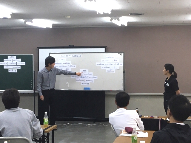 午後からはチュータリングの講義とともに、実際にダイヤモンド9という手法を用い、審判インストラクターに必要で大事な要素に優先順位をつけていく作業をグループで行いました。同グループの年配の方の貴重な意見やアグレッシブさに刺激を受けました。