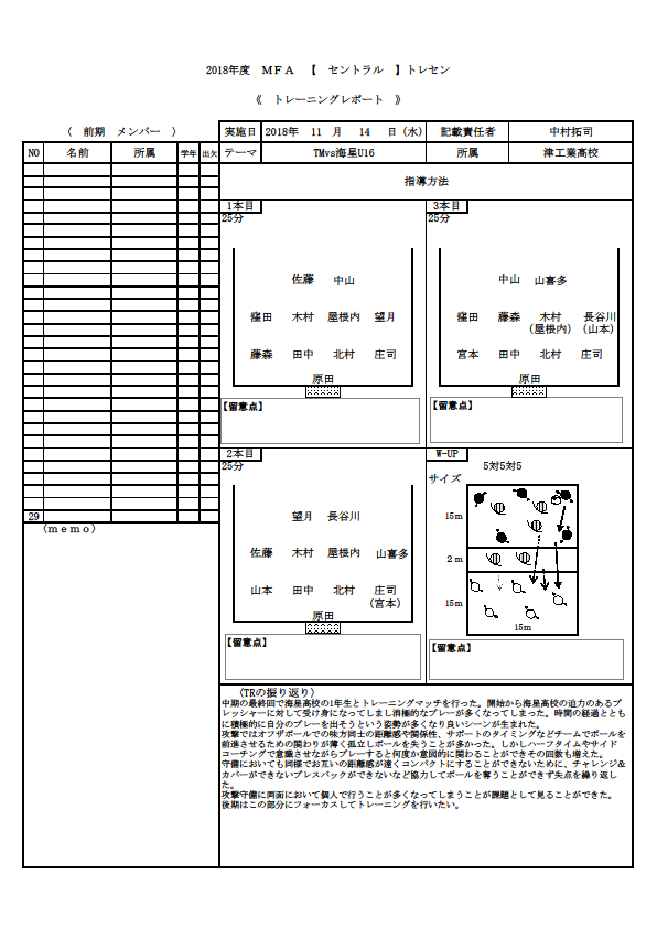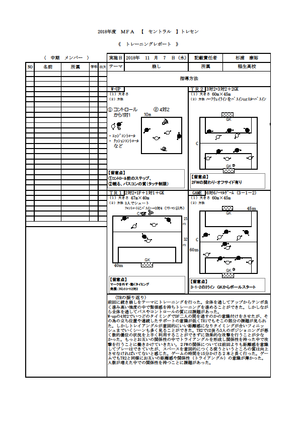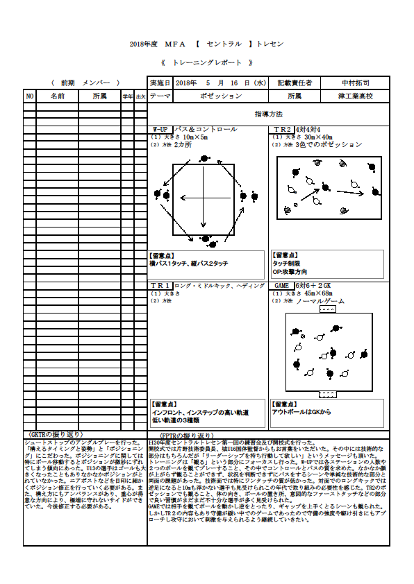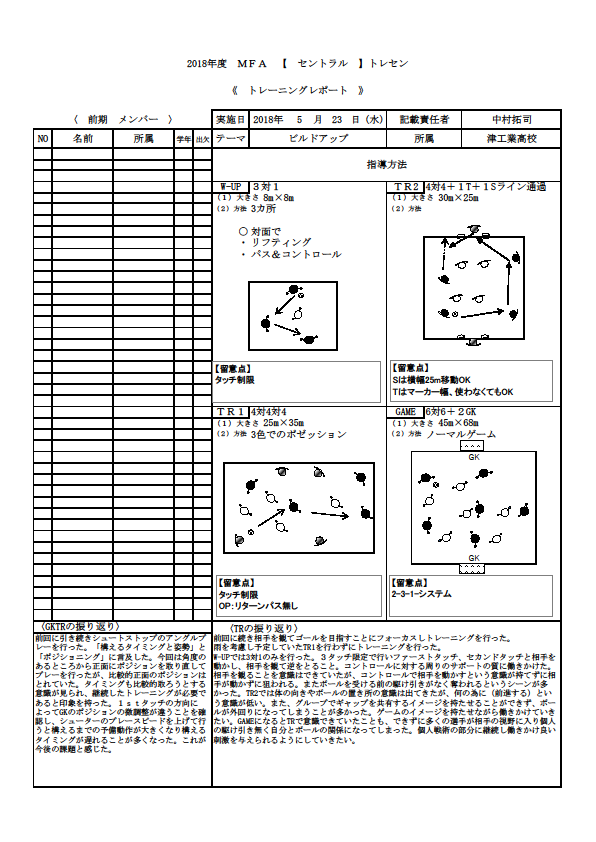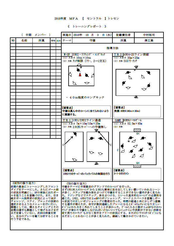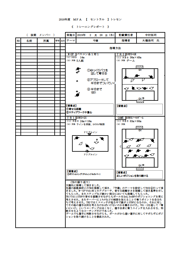 今年度のセントラルトレセンの活動が終了いたしましたので、報告させていただきます。