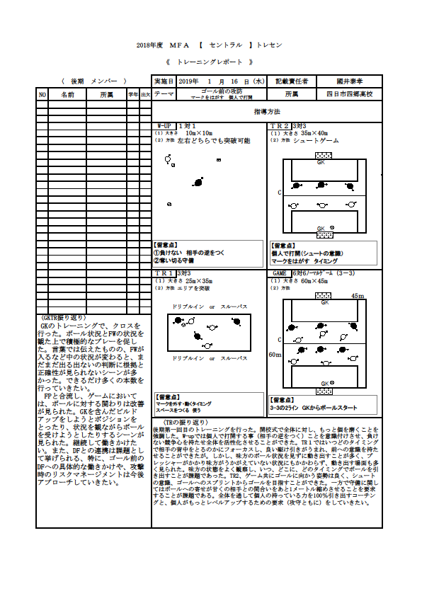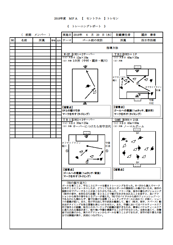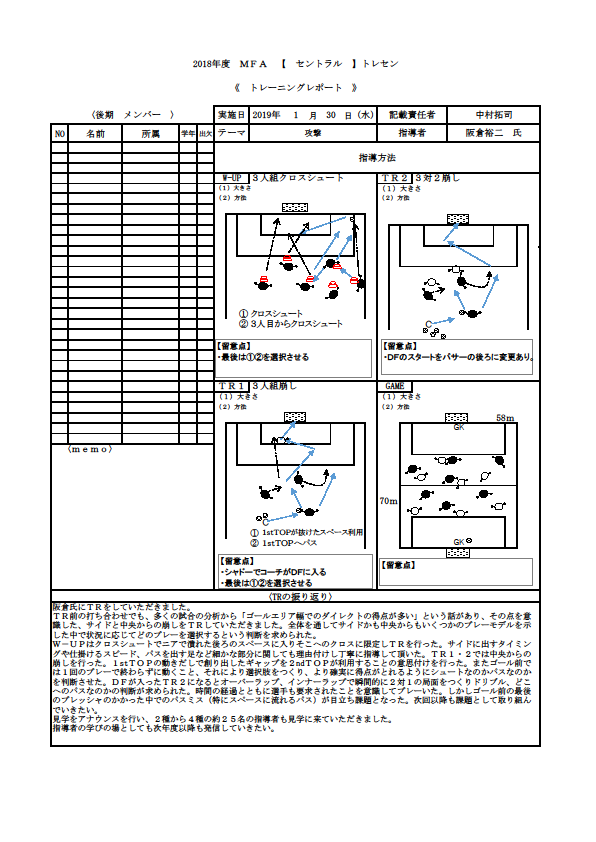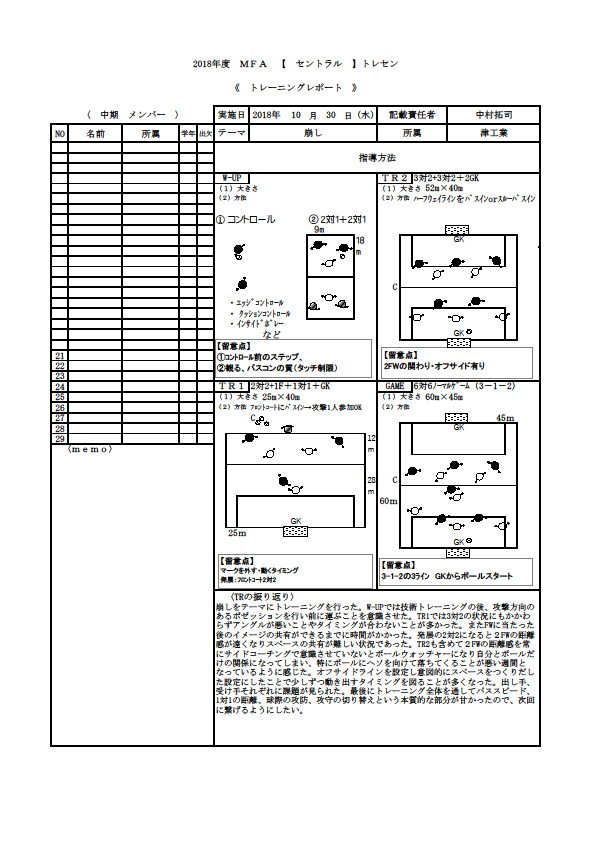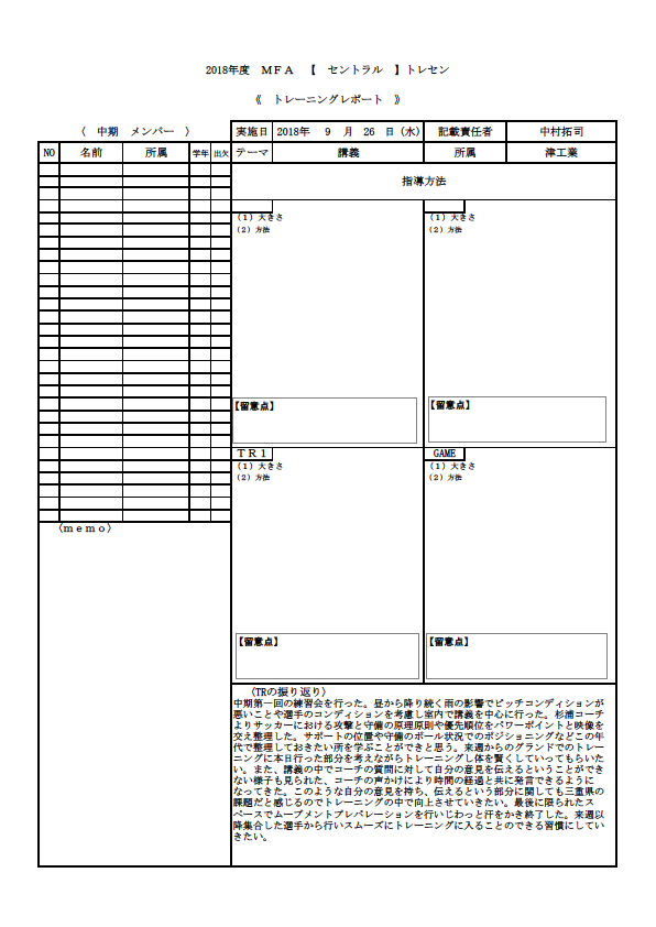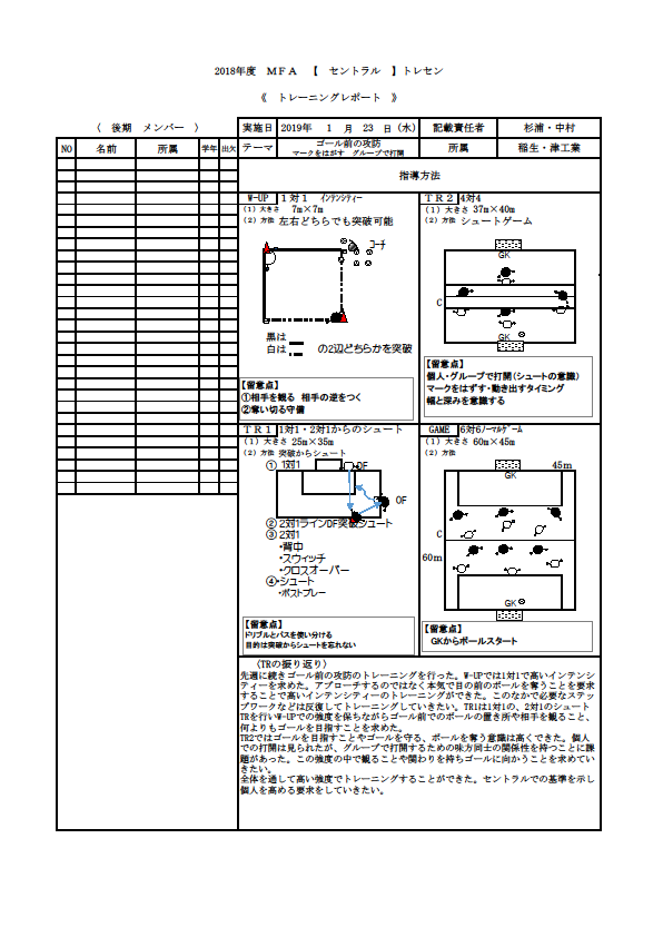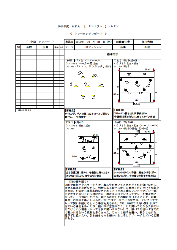 今年度のセントラルトレセンの活動が終了いたしましたので、報告させていただきます。