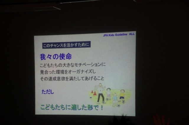 心身、特に神経系の発育発達がめざましい『幼児期』や『小学校低中学年代』において、多くの子供達に身体を動かすことの爽快さやスポーツの素晴らしさを体感してもらいながら、サッカーの普及・浸透、更には人材の育成を図ることを目的に、その指導者を養成する講習会です。