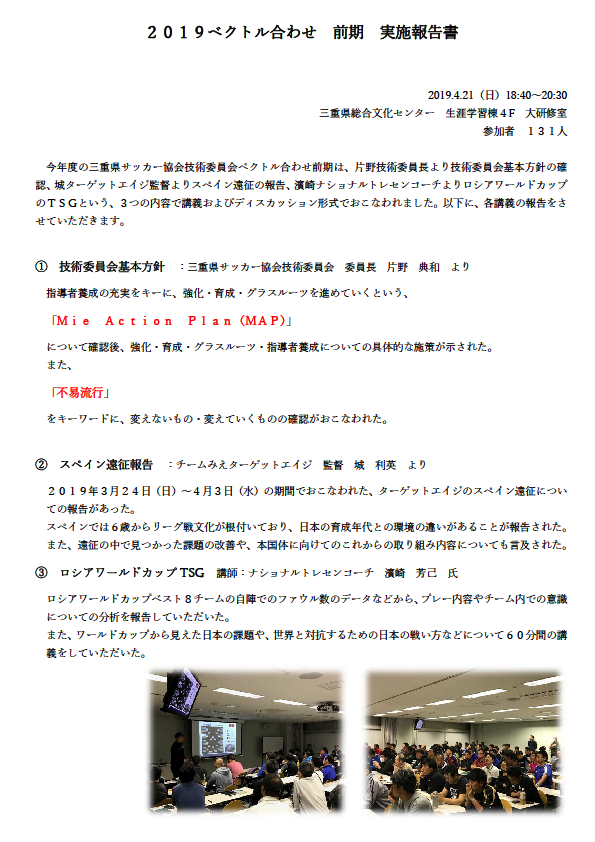 【2019年度】 三重県サッカー協会技術委員会ベクトル合わせ前期 講義が行われました。