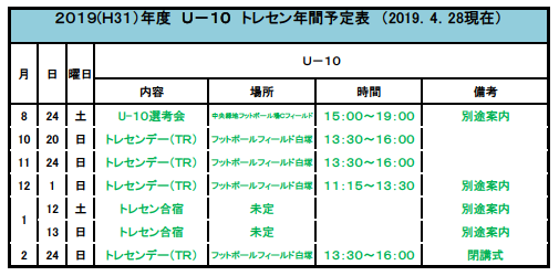 【2019年度】三重県サッカー協会 トレセンU-10 スケジュール
