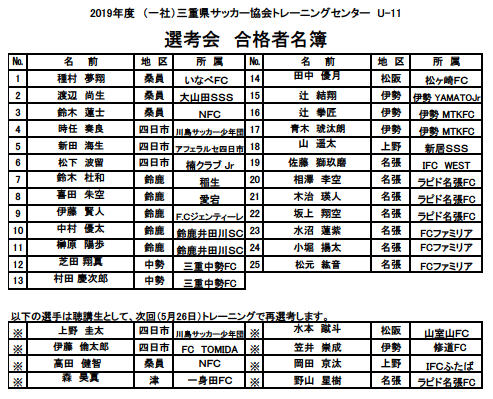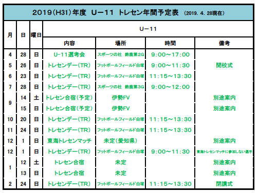 ホーム > 三重県サッカー協会 > 最新ニュース一覧 > 【2019年度】三重県サッカー協会 トレセンU-11 スケジュール・選考結果