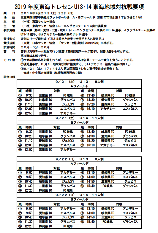 ホーム > 三重県サッカー協会 > 最新ニュース一覧 > 【2019年度】東海トレセンU13・14東海地域対抗戦について