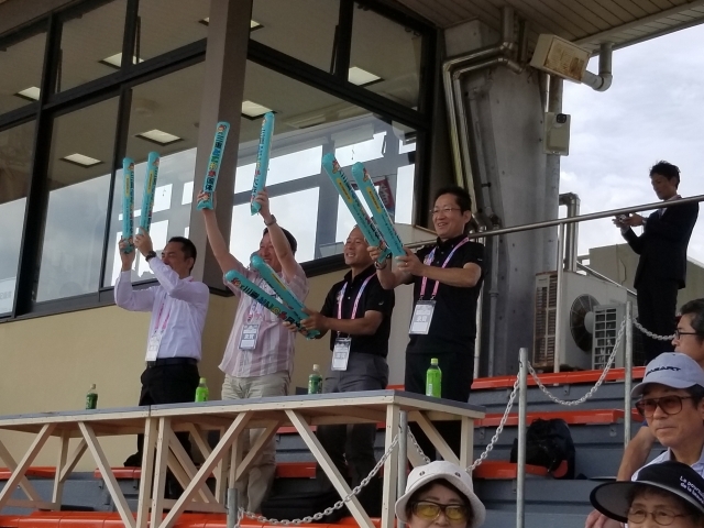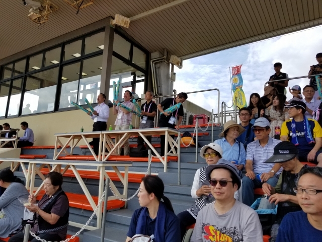 スタンドには、鈴木英敬知事、中嶋年規三重県議会議長、辻日出夫三重県地域連携部国体・全国障害者スポーツ大会局局長、髙部典幸同局次長、その他沢山の県の皆さんが応援に駆けつけていただきました。