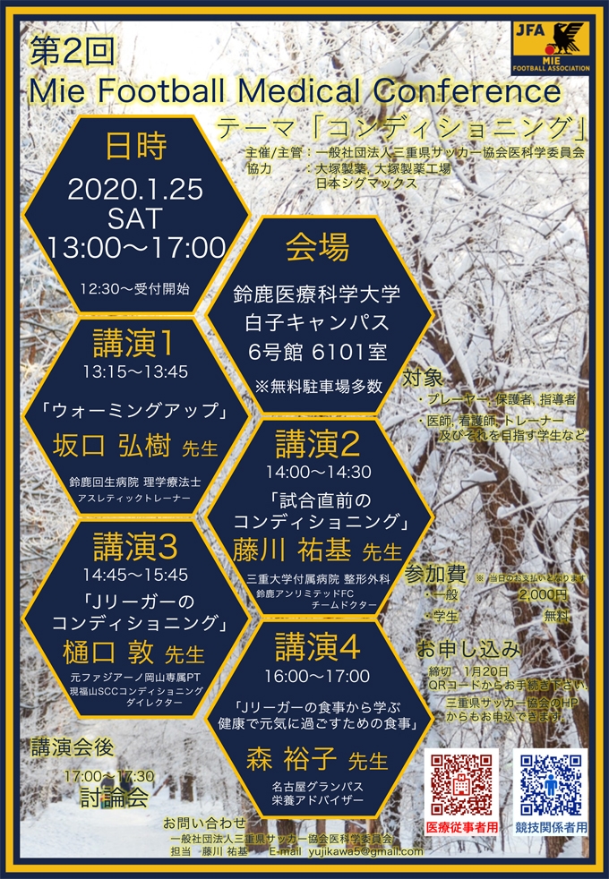 【受講者募集!】第2回 Mie Football Medical Conference開催について