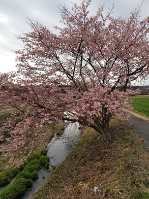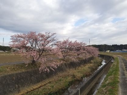 三重交通Gスポーツの杜鈴鹿サッカー・ラグビー場の側の田んぼで河津桜を見かけました。プレゼントにします。