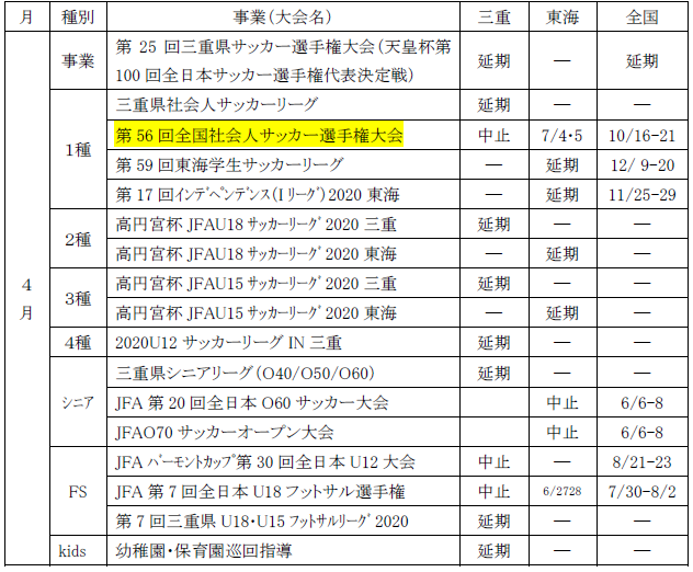 - 三重県サッカー協会 2020/04/08 三重県サッカー選手権大会決勝戦及び天皇杯1回戦の延期について
