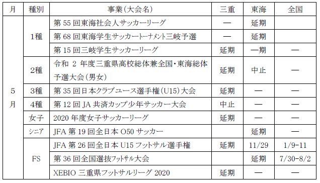 - 三重県サッカー協会 2020/03/29 【重要】新型コロナウイルスの感染拡大防止策継続について
