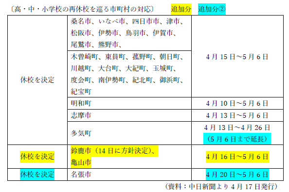 - 三重県サッカー協会 2020/04/14 【謹告】高・中・小学校 臨時休業のお知らせ(まとめ)