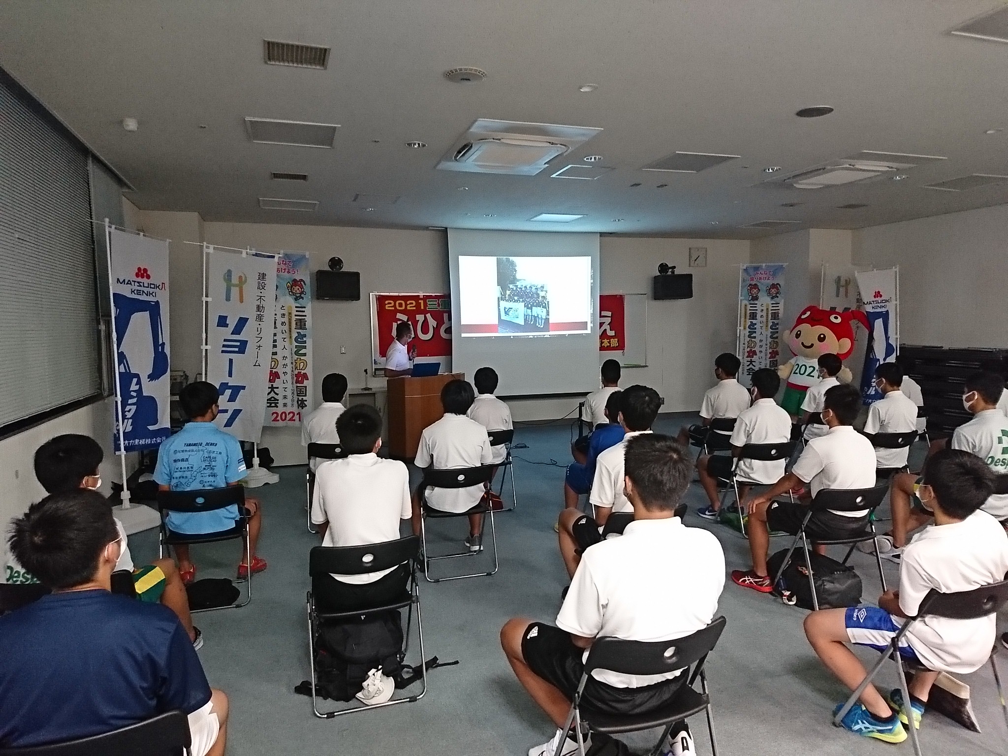 ターゲットエイジの候補選手40名と強化スタッフが参加し、九鬼国体委員長、三重県競技力向上対策課 課長 松﨑氏からの挨拶や、城監督からの映像を交えた三重とこわか国体へ向けての強化ミーティングをおこないました。