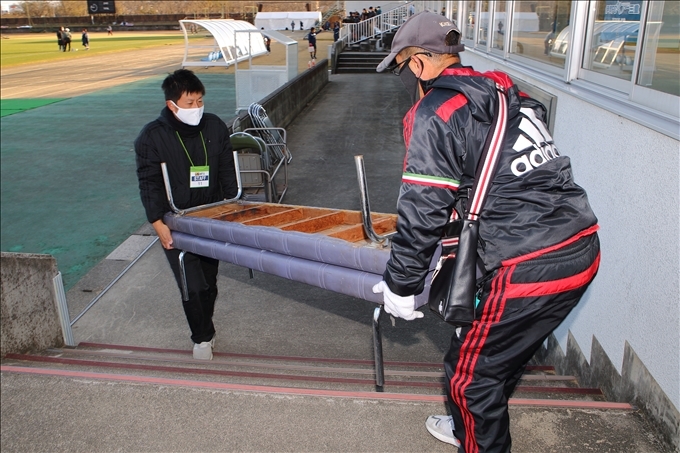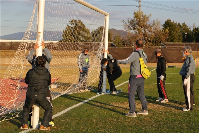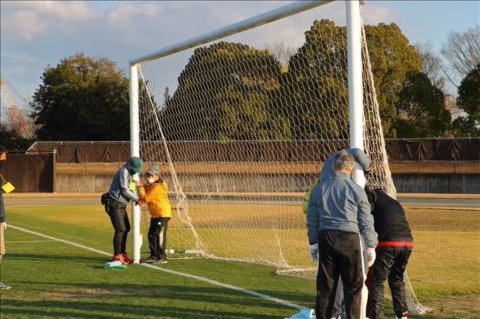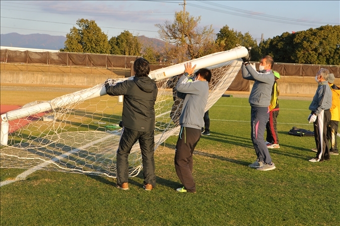 ゴールの片付けは伊賀FCくノ一三重の運営でもお世話になっている中村さん中心で
