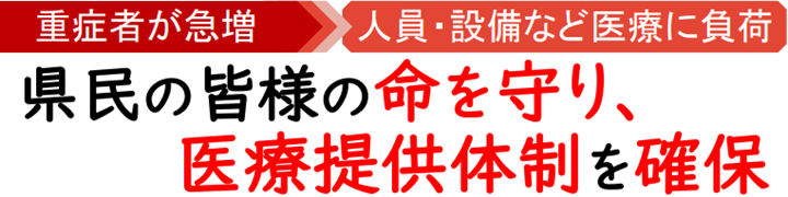 ➀不要不急の行動の自粛 ・日中も含め不要不急の外出自粛を徹底 ・特に名古屋市 20時以降 ・感染対策が徹底されていない飲食店の利用自粛 ②県をまたぐ不要不急の移動自粛 ・不要不急の移動自粛 ③高齢者等への感染拡大の防止 ④基本的な感染防止の対策の徹底 |