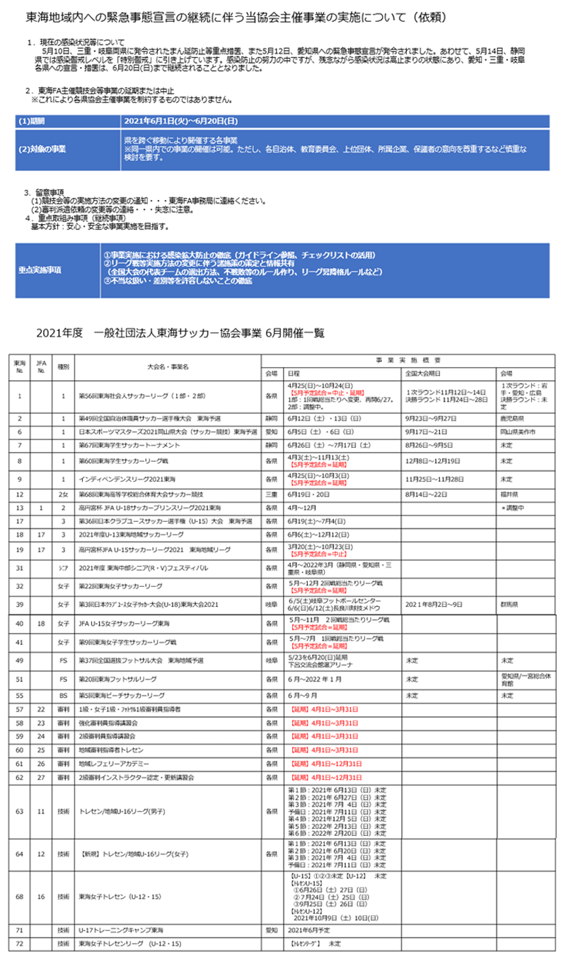 - 三重県サッカー協会 2020/04/21 【お知らせ】大会中止及び延期のお知らせ