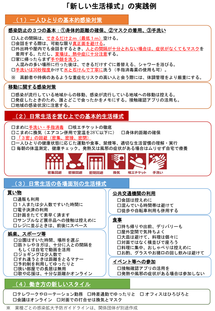 「新しい生活様式」の実践例(厚生労働省HPより クリックでPDFが開きます)