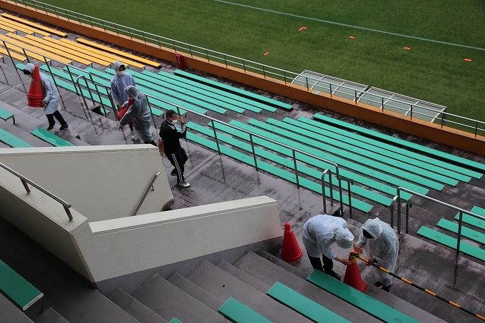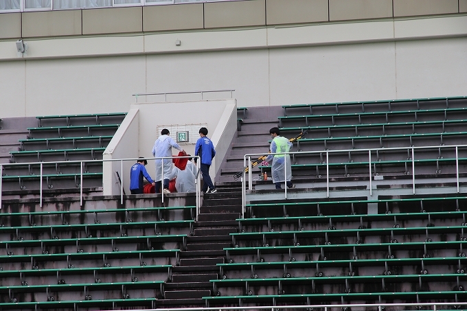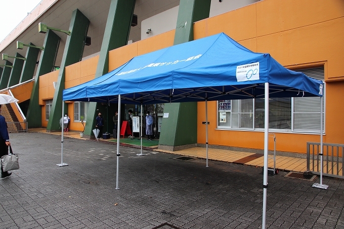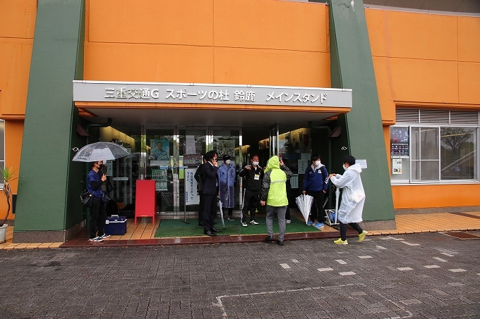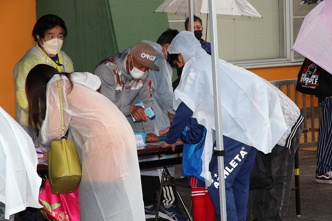 バックスタンド開放のための受付です、コロナ対応を行って頂きました