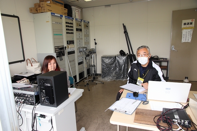 場内アナウンス担当と得点板、タイマー担当です お二人とも運営のベテランです