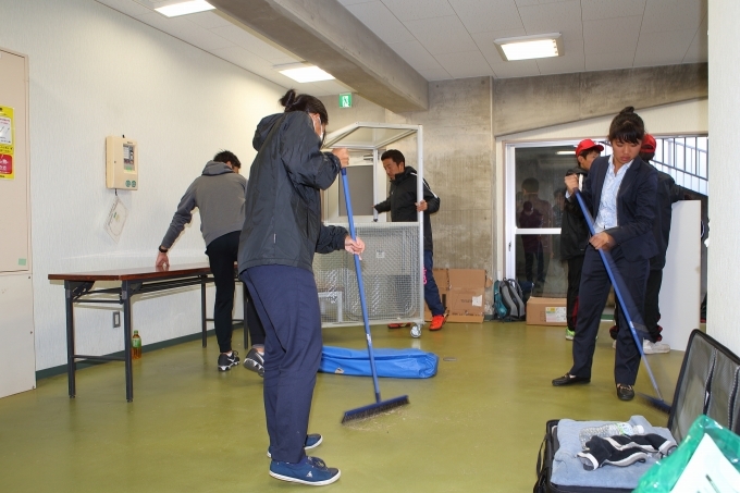 試合を担当して下さった審判員の皆さんも掃除を手伝って下さいました