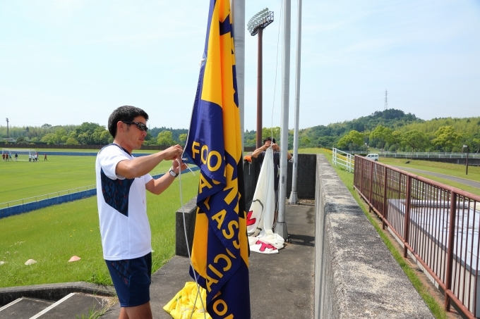 協会旗、協賛旗、チーム旗の掲揚を行います