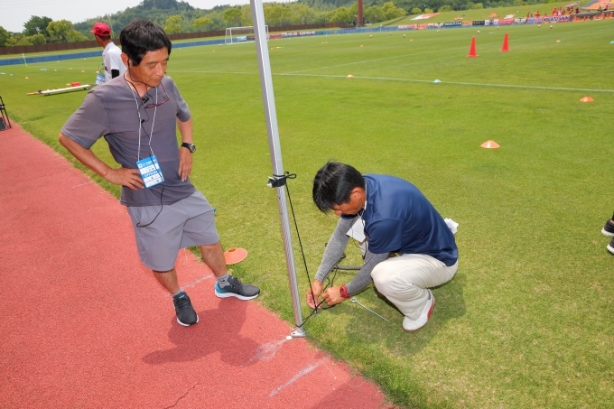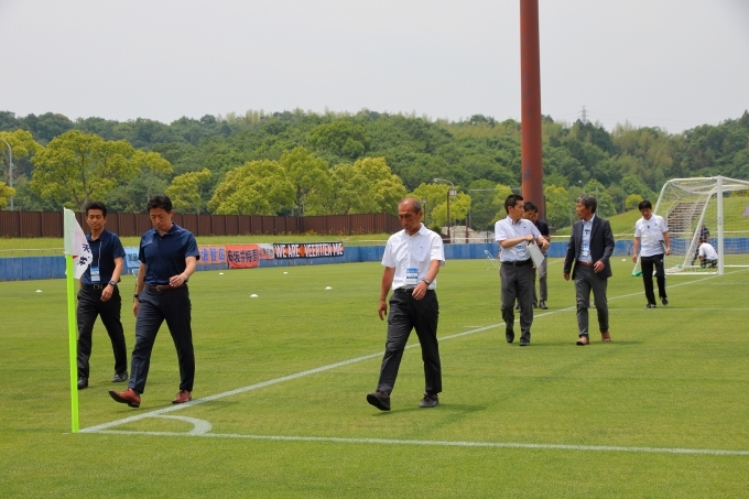 審判団、マッチコミッショナー西牟田氏によるピッチ点検