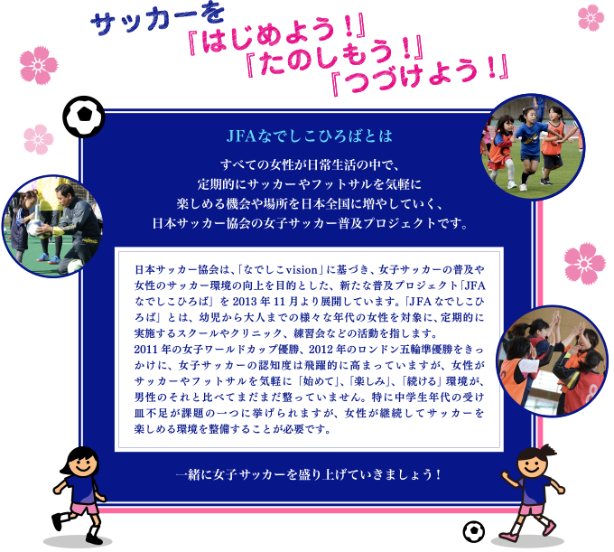 「Football for All サッカーを、もっとみんなのものへ。」誰もが生涯にわたり楽しめる、その環境づくりに取り組んでいます。