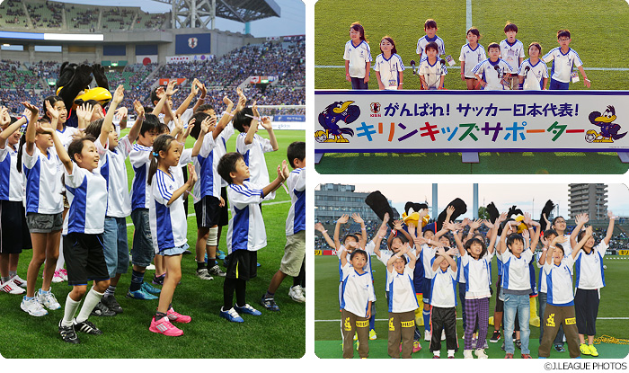日本代表戦のスタジアムでおなじみのマスコット「カラッペ」「カララ」と一緒に試合開始前のピッチを1周できるプログラムです。