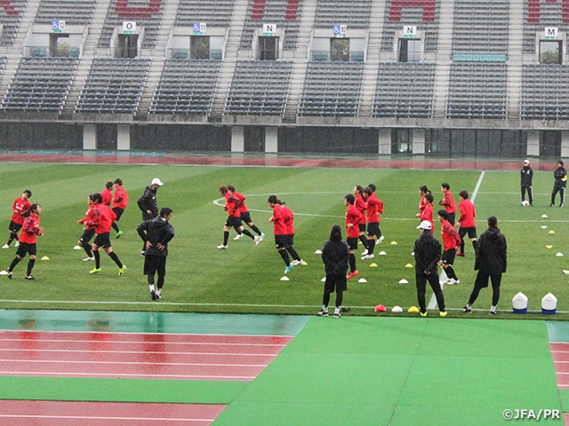 なでしこジャパン 雨の中、スタジアムでトレーニング ~キリンチャレンジカップ2017 ~熊本地震復興支援マッチ がんばるばい熊本~