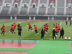 キリンチャレンジカップ2017 ~熊本地震復興支援マッチ がんばるばい熊本~ なでしこジャパン 対 コスタリカ代表の担当審判員がスタジアムで前日練習を実施