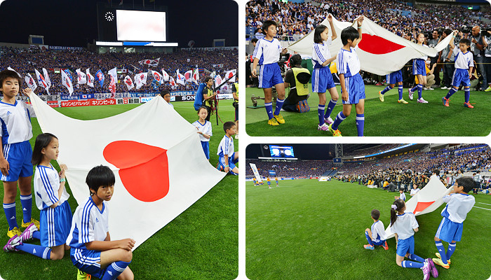 試合前に選手を先導してピッチに入場する国旗を運びます。たくさんのお客さんが見守る中、誰もいないピッチに最初に入場していく緊張感を、選手たちと一緒に味わってください。