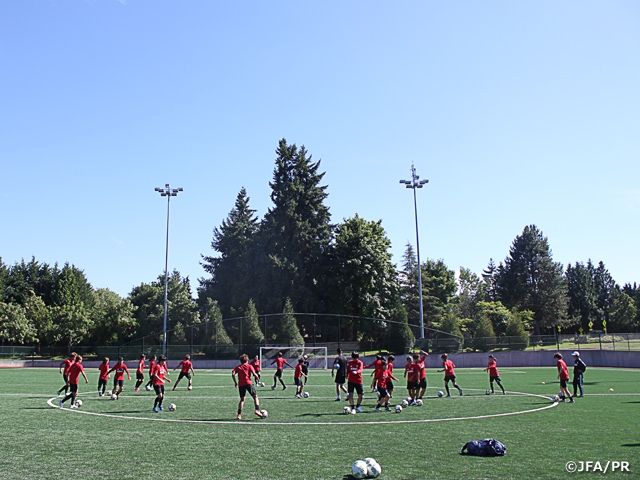晴天に恵まれた午後は早速トレーニングを行いましたが、週末のリーグ戦と移動の疲労を考慮して、コンディション調整を目的にジョギングとボールを使っての軽めのメニューとなりました。日本に比べて湿度が低く、サッカーをする環境は快適であるものの、日本とシアトルでは16時間の時差があり、いち早くコンディションを整えることが重要となります。