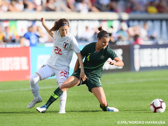 シカゴで行われた2018 Tournament of Nations最終戦、なでしこジャパンの対戦相手はアメリカと優勝を争うオーストラリア。4月のAFCアジアカップで2度対戦した相手です。ここまで2連敗、何とか1勝をもぎ取りたい日本は立ち上がりから2トップの田中美南選手、横山久美選手らが前線から相手にプレッシャーをかけ続けます。