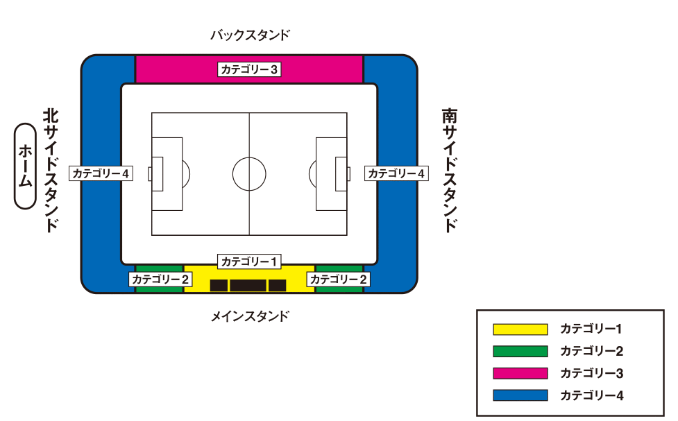 - ゴール裏(カテゴリー4)のエリアでは、立ち上がって応援されるサポーターがいる場合があります。このエリアは自由席のため、エリア内でのお席の移動は可能ですが、混雑時等は移動が難しい場合もあります。そのため、着席して観戦を希望されるお客様は、指定席またはゴール裏以外のエリアでの観戦をお勧めします。