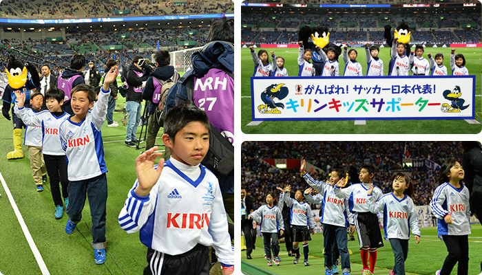 日本代表戦のスタジアムでおなじみのマスコット「カラッペ」「カララ」と一緒に試合開始前のピッチを1周できるプログラムです。