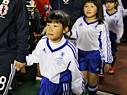 たくさんのお客さんが見守る中、あこがれの選手たちと手をつないでピッチに入場します。キックオフ直前のピッチの緊張感を味わうことができますよ。