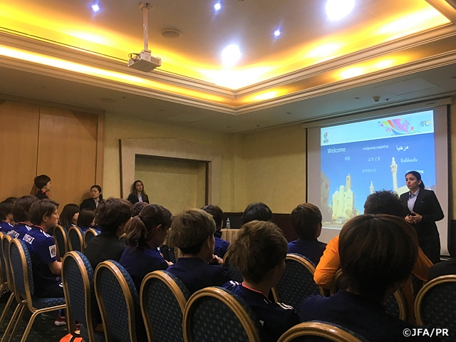 昼食後にはアジアサッカー連盟(AFC)による大会に関する諸注意やレギュレーションの確認を行うミーティングが行われ、それに続けて大会用の写真撮影やAFC公式サイト用のインタビューが実施されるなど、いよいよ大会モードが高まってきました。
