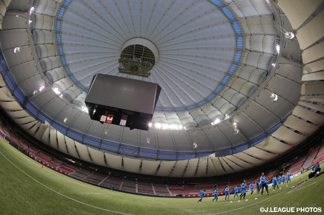 カナダ女子代表を相手に3-0で勝利したなでしこジャパンは26日(日)、第2戦が行われるバンクーバーに移動しました。翌27日(月)には、FIFA女子ワールドカップ2015の決勝戦も行われる試合会場、BC Placeで公式練習を実施。ビルドアップや紅白戦などのメニューで最終調整を行いました。