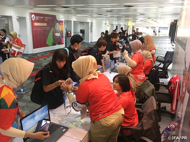 なでしこジャパンは13日(月)、第18回アジア競技大会(2018/ジャカルタ・パレンバン)に出場するために集合し、ジャカルタを経由して開催地のパレンバンに入りました。空港や街中のいたるところに大会ロゴやマスコットの装飾が施され、ボランティアスタッフは皆笑顔で出迎えてくれるなど、パレンバンはいよいよ始まるアジアの祭典を前に歓迎ムード一色です。