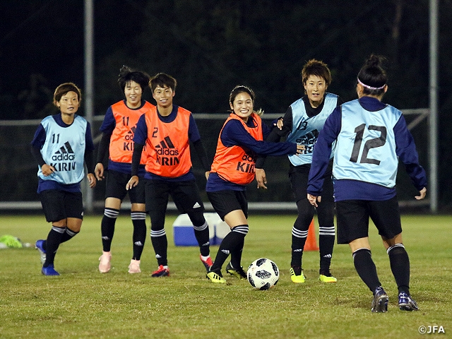 高倉麻子監督はトレーニング前に全員を集めると、「ここがワールドカップに向けた最初の一歩。新しいメンバーもいる。いい競争をして、強いチームになってほしい」と話し、強敵・ノルウェー女子代表戦に向けて気を引き締めると同時に、トレーニングではミニゲームなどで楽しくたくさんボールに触り、8月のアジア競技大会以来の集合となるチームの雰囲気を盛り上げていました。