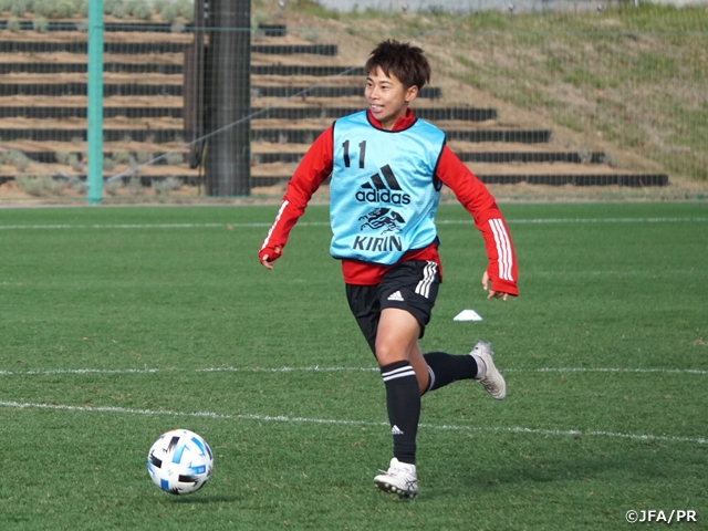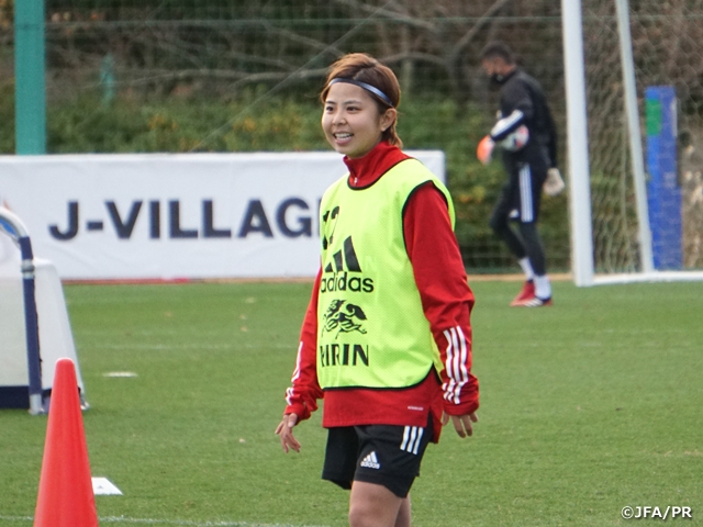 所属チームではトップ下や左サイドで起用されることが多く、代表では今回右サイドですが、あまりそこに違いは感じていません。所属チームでも最初はポジションが決まっていますが、試合中は流動的で、あまり違和感なくプレーできています。なでしこリーグで優勝できたことはすごく嬉しいですし、ドイツから帰国して優勝に貢献できたことは良かったと思っています。代表チームは代表チームで、先月に続いて短いスパンで活動できていることはプラスに思っていて、10月からさらに積み上がっているなと感じます。トレーニングや試合をする中で個々の特徴を掴んで、例えば距離感が合ってきているなど、そういった部分で10月よりはいい感覚があります。