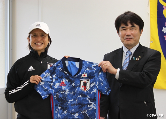 この日はトレーニング前、練習会場の姶良市の湯元敏浩市長がチームを訪れ、「東京オリンピックの年に会場に選んでいただけたことは大変に光栄です。ぜひ頑張ってください」と激励がありました。高倉麻子監督も、「皆さんのご理解とご尽力のおかげで活動させていただけています。ピッチも素晴らしく、本当にありがとうございます」とチームを代表して感謝の意を伝えました。