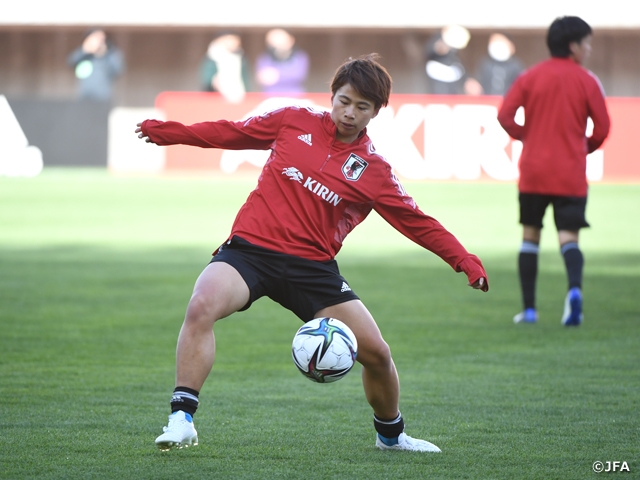 代表チームとして約1年ぶりの公式戦となりますが、こういう大変な状況の中で試合ができるのはありがたいことだと思います。オリンピックが控えているので、自分たちのプレーを見せていかないといけないですし、オリンピックで期待してもらえるように、チームとしても個人としても結果を出していきたいと思います。特に私たち海外組は、帰国するにあたって色々な方の力のおかげでここに来ることができたと感じています。高いクオリティでゴールに向かう迫力を見せ、前線の選手として要求する声や動きで、チームを前に前に進めるような姿勢を出したいと思います。
