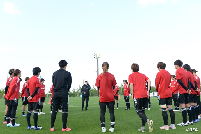 4月の国際親善試合と、その後始まったWEリーグのプレシーズンマッチを経て、このような厳しい状況の中でも再び活動できることを嬉しく思っています。いよいよ東京オリンピックが近づいてきて、選手、スタッフ一同、緊張感も高まり、先日抽選会が行われて組み合わせが決まったこともあって本番モードも高まってきています。攻守に渡る戦術のブラッシュアップと、選手個々のコンディションや、細部に渡る技術的な部分で研ぎ澄ませていく大事なキャンプになると思っています。選手のちょっとした変化を見逃さずに、細かなところに気を配りながら、実りの多い活動にしたいと思います。