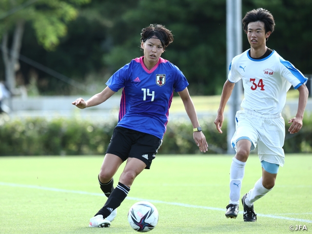 男子高校生を相手に主にセットプレーやカウンターの守備のトレーニングを行いましたが、まずそうした状況を作らないことが一番です。ただ、そうなってしまった場合に、どのポジションに戻るか、相手のラインの高さや相手のボールの場所によってどこまで自分たちの守備ラインを下げるのかなど、そして最終的に突破されてしまったら最後は人につくということを再確認する作業を男子相手にできていい練習になりました。(ゲームでは2本目にボランチで起用されたが)所属チームではボランチでプレーしてきましたし、自分のオプションであり、チームの力になれるところだと思います。自分がそこに配置される意味は、球際での戦いや最終ラインからひとつ高いポジションで相手の攻撃の芽を潰せるというところだと思っています。今日の相手にはなかなかそうしたシーンは出せませんでしたが、チームのひとつのオプションになればと思います。7月14日のMS&ADカップの相手がオーストラリアに決まり、素晴らしいチームを相手に本番前最後に試合ができることは嬉しいことで、最後のテストだと自覚して戦いたいです。チームとしての完成度を高めた上で、ラストトライの機会にしたいと思っています。