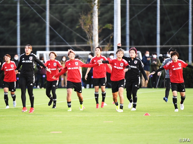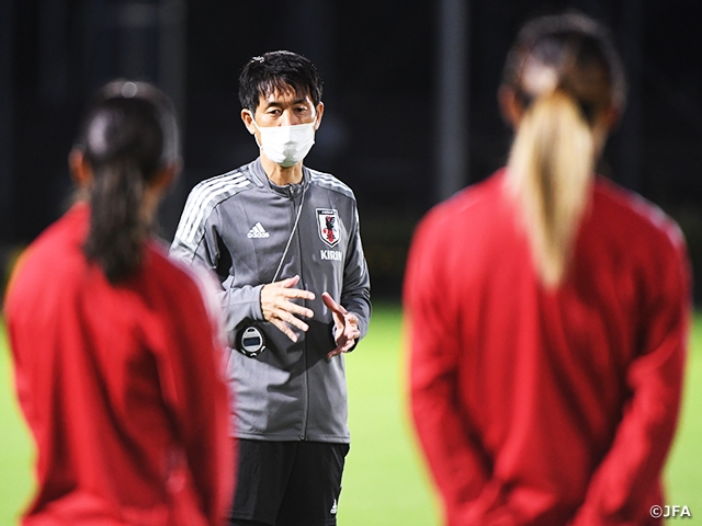 短い期間の中にトレーニングマッチも入れていますが、攻撃や守備の特定の点についてピンポイントでトレーニングをするというより、全体のチームコンセプトやどういう狙いを持ってやるか、このチームが目指していくサッカーの全体像をこのキャンプでは伝えていければと思っています。世界的に見ると男子でもそうですが、高い位置からハイプレッシャーをかけていくチームも多くなってきました。それをかいくぐることも日本の良さとして、もう少し我々も力をつけていかなければいけないと思っています。守備のところはボールを奪う回数、場所をもう少し相手陣内でできればというイメージがあります。もちろんサッカーは選手個人の判断が大事になるスポーツなのは間違いないので、そこを大切にしていきたいというのはベースにあります。ただ、いろんなプレーがある中で、仲間同士でも共通認識として、そのプレーがチームの狙いと比べてどうかということを判断できるようなコンセプトや戦い方はトレーニングして積み上げていきたいと思っています。